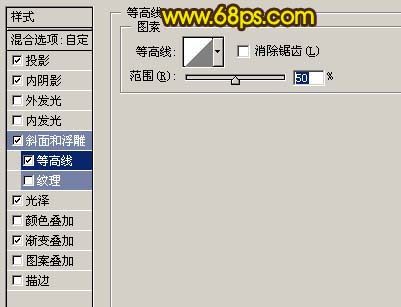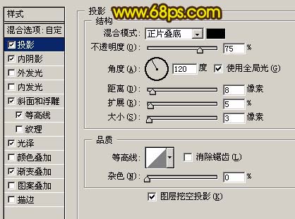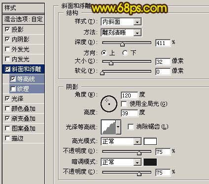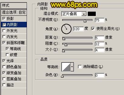2、双击图层面板,文字缩略图调出图层样式,参数设置如下图。部分参数需要根据字体的时候大小稍作修改。