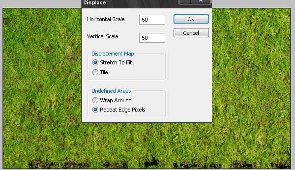 13、添加一些草,去“替换纹理”文档粘贴这个图像。应用位移贴图,像做其他材质那样实现它(见步骤5以及步骤10),最后复制草地。