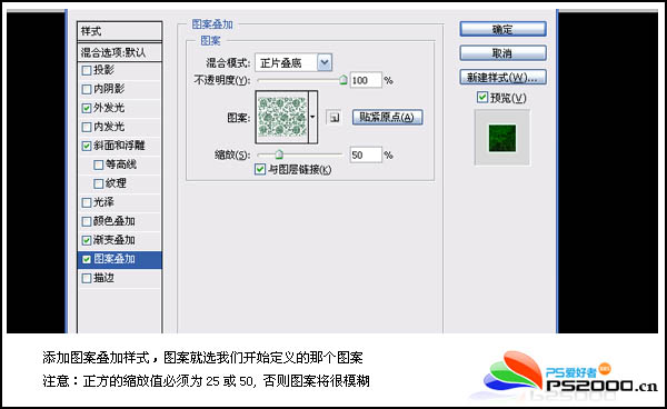 图案叠加,图案选择我们开始定义的那个花纹图案。