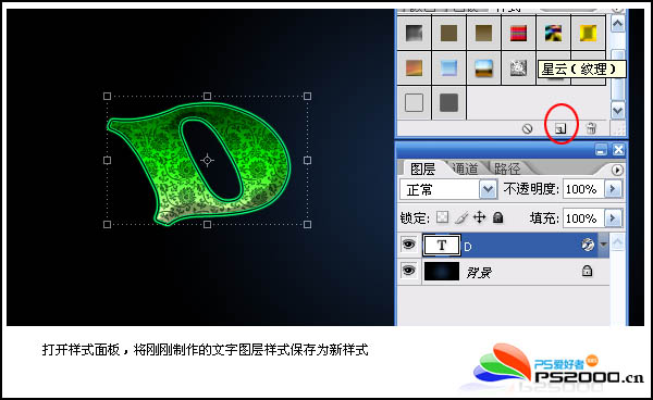 5、打开样式面板,将刚刚制作的文字图层样式保存为新样式。