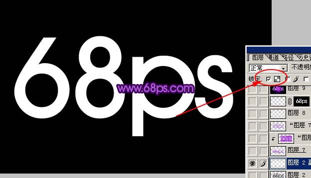 2、把文字转为图层(在文字上面按右键选择栅格化文字即可),然后如图2所示锁定图层。