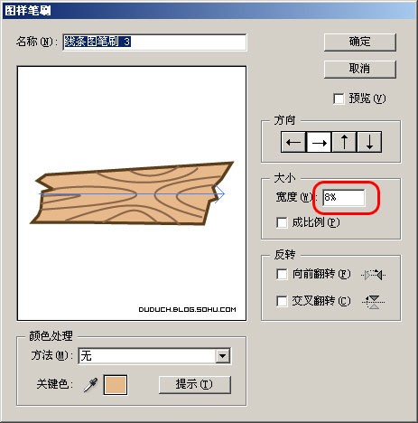 4.应用画笔,因为画笔定义的大小问题,需要适当的调整笔刷的大小比例(双击笔刷调板的对应笔刷即可