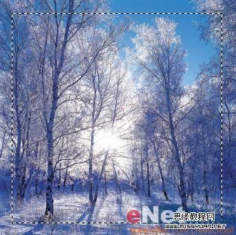 2、连续复制两次背景图层,得到“背景副本”和“背景副本2”两个图层。单击工具箱中的“矩形选框工具”,在画面中的适当位置创建选区,效果如图2所示。