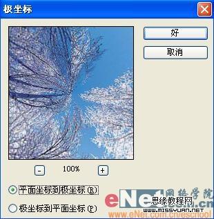 3、选择背景副本2。执行菜单栏中的“滤镜”“扭曲”“极坐标”命令,在弹出的对话框中勾选“平面坐标到极坐标”选项,如图3所示,图像效果如图4所示。
