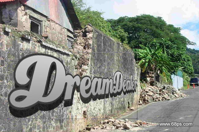3.在按Ctrl + T 自由变换角度让文字看起来更真实。