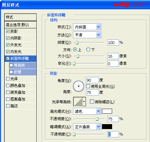 8、再添加图层样式“斜面和浮雕”效果。参数如下图设置: