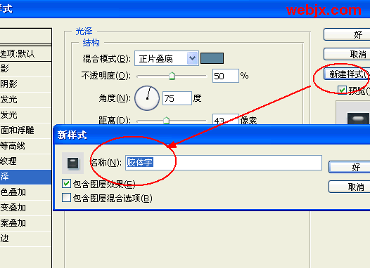 11、点击新建样式按钮,命名为:胶体字,定义一种新样式。