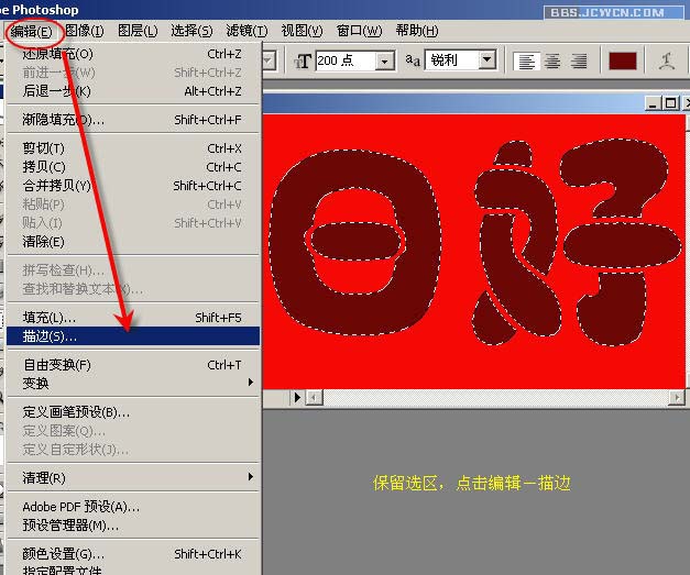 4、保留选区,点击编辑——描边。
