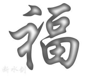 二、新建图层,按CTRL键同时点击福字图层,得到福字选区,执行选择-修改-收缩8象素(这个参数根据你字体大小可以调整,我用300点大小的字),填充白色,取消选区,高斯模糊5象素。