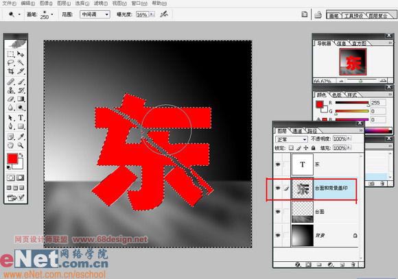 七、载入文字层的选区后反选,在盖印的图层上删除多余的选区,得到如图所示的效果。