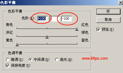 7.合并新建的图层和文字副本,按Ctrl + B 调色彩平衡,参数设置如图10,确定后再按 Ctrl + U 调 色相/饱和度 参数设置如图11,效果如图12