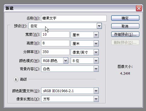 1、新建一个文件,名称可以自定义,宽度和高度可以按照自 己的需要自行设定,分辨率设为350象素/英寸,背景内容为白色,完成按确定。