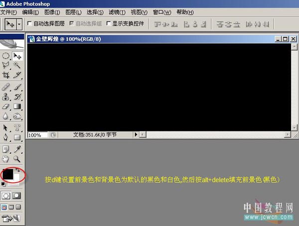 2、按d键设置前景色和背景色为默认的黑色和白色,然后按Alt+Delete填充前景色(黑色)。