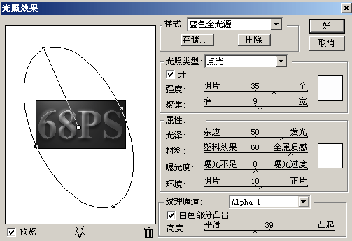 : 滤镜 > 渲染 > 光照效果 参数设置如图5 效果如图6