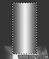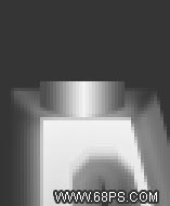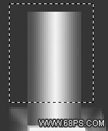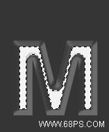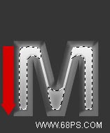 4、新建一个图层,把图层适当的放大,在"M"的左上角位置用矩形选取工具绘制一个矩形。选择渐变工具设置如图8,渐变方式选对称渐变,效果如图9,再用矩形选取工具,选区图形的上大部分如图10,按