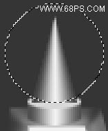 6、按Ctrl + T 把圆柱的宽度缩小15%如图14,然后在变形区域按鼠标右键选择透视,把最上面的部分合并到一点如图15,用圆形选取工具绘制图16所示的椭圆,然后反选