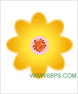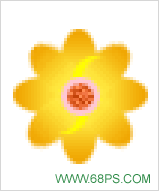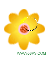 8.在花瓣的图层上面新建一个图层,用椭圆选取工具绘制正圆如图19,然后填充黄色,在把选区适当的移动位置,按Delete