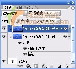 8.按Ctrl+J复制一个该图层的副本,将副本图层的颜色模式改为“颜色减淡”,并将不透明度改为50%,如图14所示。