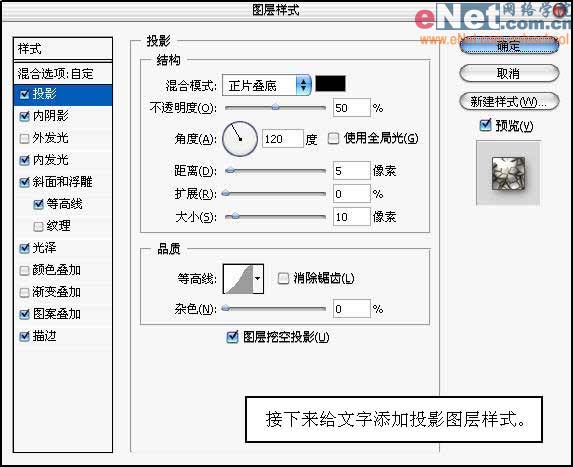 6、接下来给文字添加投影图层样式。
