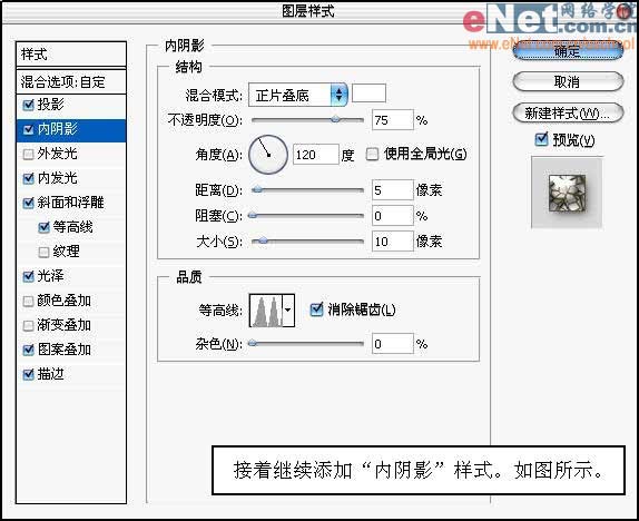 7、接着继续添加“内阴影”样式,如图所示。