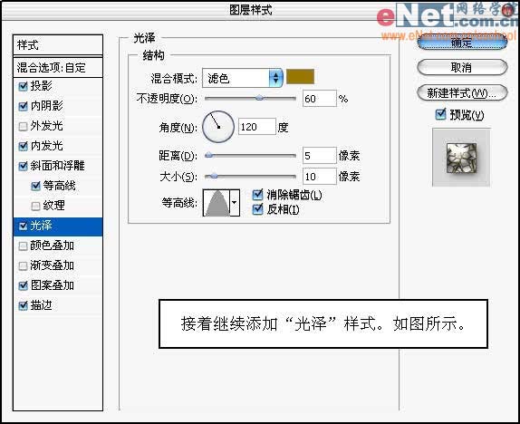 11、接着继续添加“光泽”样式,如图所示。