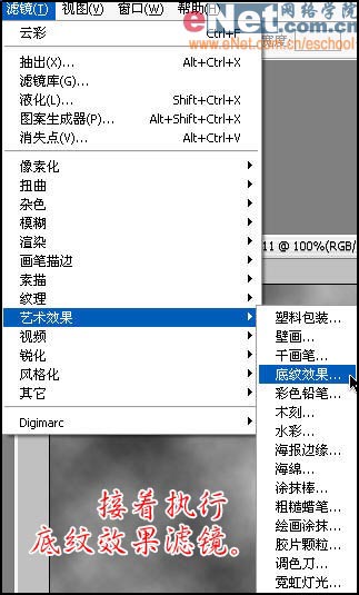 2、接执行滤镜-艺术效果-底纹效果。