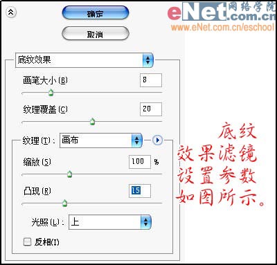3、底纹效果滤镜参数如图所示。