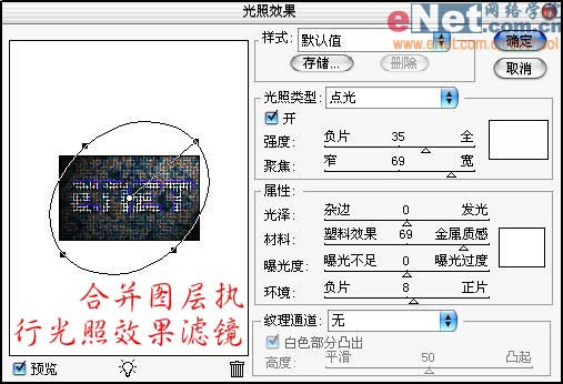 15、合并图层,执行-滤镜-渲染-光照效果。如下图设置: