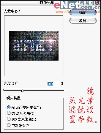 16、再执行-滤镜-渲染-镜头光晕。如下图设置: