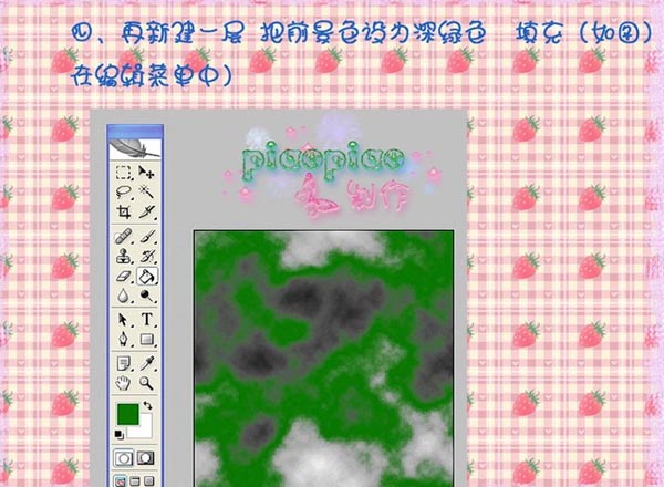 四、再新建一层,把前景色设为深绿色,选择编辑菜单中的填充(如下图):