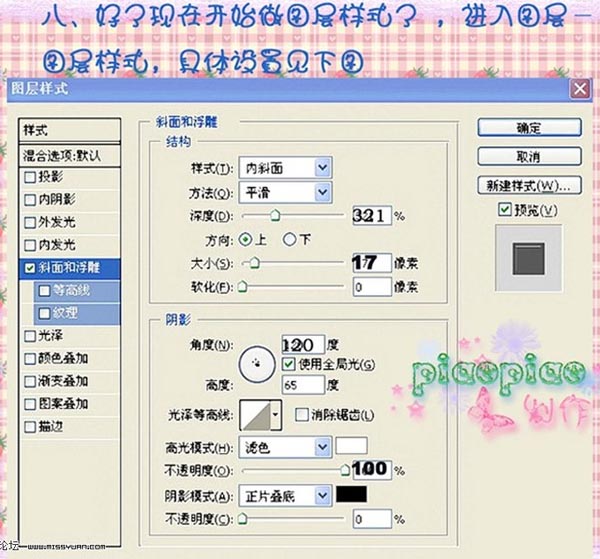 八、好了,现在开始添加图层样式,进入图层样式,具体设置如下图: