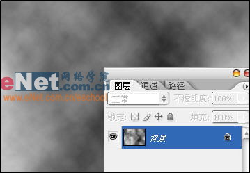 1、新建工作窗口,然后执行“滤镜”→“渲染”→“云彩”命令,制作出不规则的黑白云雾图案。