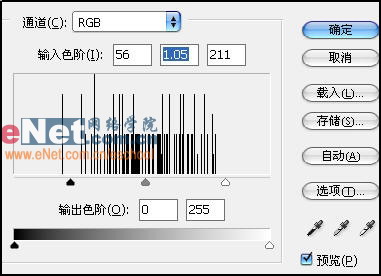 3、现在调节色阶使图像变得更清晰,执行“图像”→“调整”→“色阶”命令,设置色阶为:56、1.05、211。