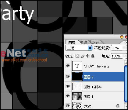 10、现在看来背景图案过于亮,我们心在新建一个图层,填充黑色,然后调节其不透明度为35%。