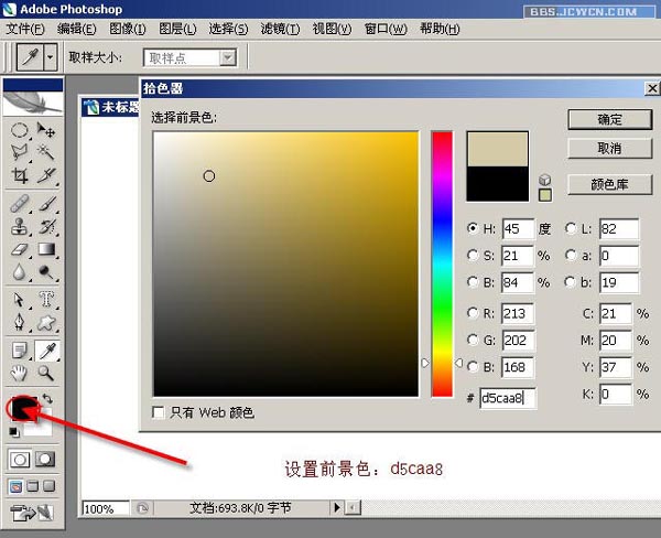 二、设置前景色:d5caa8。