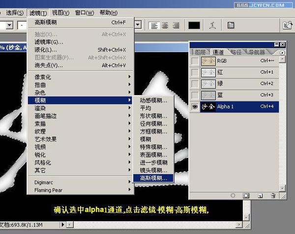 九、确认选中alpha1通道,点击滤镜——模糊——高斯模糊。