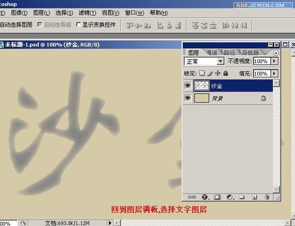十三、回到图层调板,选择文字图层。