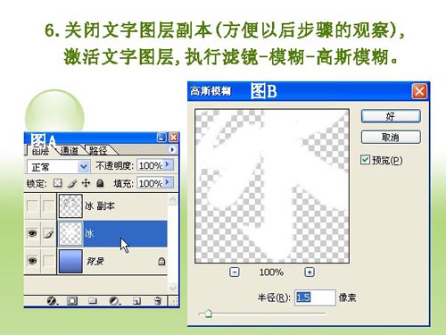 6、关闭文字图层副本(方便以后步骤的观察),激活文字图层,执行滤镜/模糊/高斯模糊。