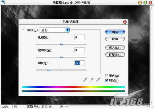 5、按下Ctrl+U键打开色相/饱和度调版进行调整,将明度值调整为-50,单击确定按钮应用调整。如图5所示。