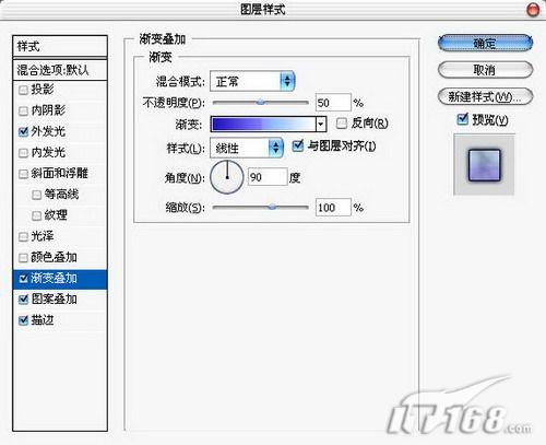 13、添加渐变叠加样式,自行设置一个渐变样式,将不透明度设置为50%。如图13所示。