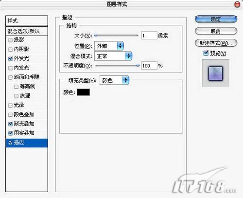 15、添加描边样式,大小设置为1像素,颜色为黑色。如图15所示。