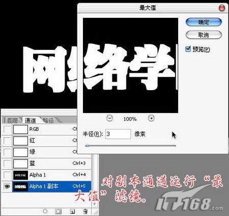 4、对Alpha 1副本通道执行“最大值”滤镜,半径设置为3像素。如图4所示。