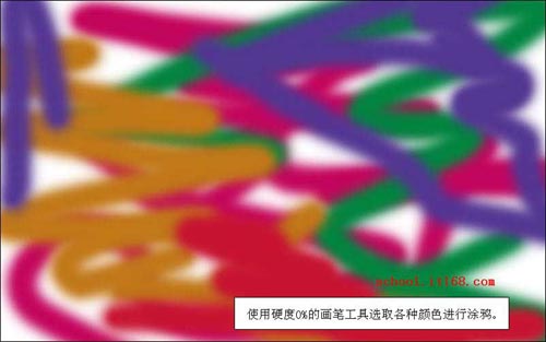 2.使用硬度0%的画笔工具选取各种颜色进行涂鸦,我打算用它来作背景。如图2所示。