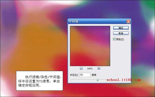3.执行滤镜/杂色/中间值,将半径设置为70像素,单击确定按钮应用。如图3所示。