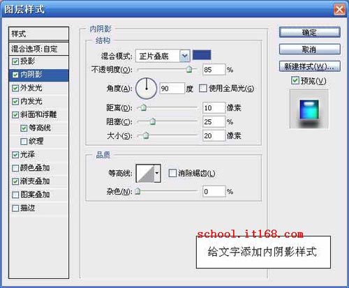 8.给文字添加内阴影样式,参数设置如图所示。如图8所示。