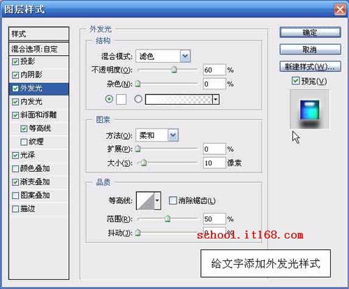 9.给文字添加外发光样式,参数设置如图所示。如图9所示。
