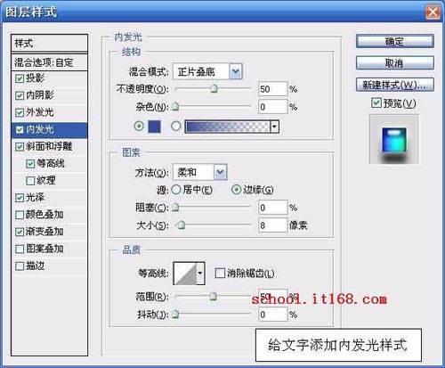 10.给文字添加内发光样式,参数设置如图所示。如图10所示。