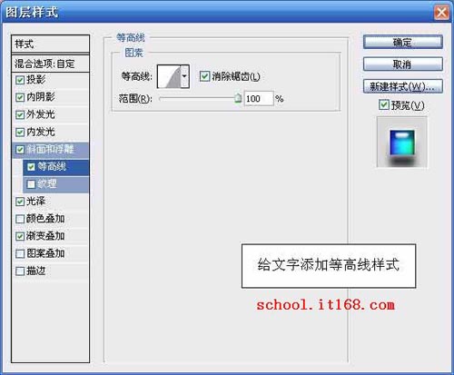 12.给文字添加等高线样式,参数设置如图所示。如图12所示。