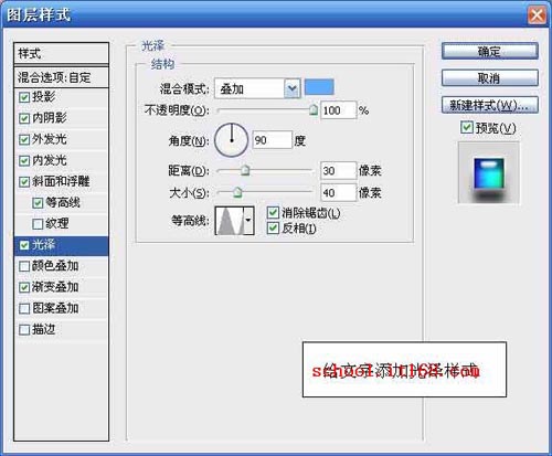13.给文字添加光泽样式,参数设置如图所示。如图13所示。