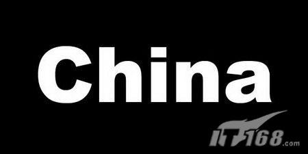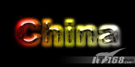 2.将背景图层填充黑色,将前景色设置为白色,选取文字工具输入文字“China”并置于画布中央。如图2所示。